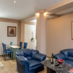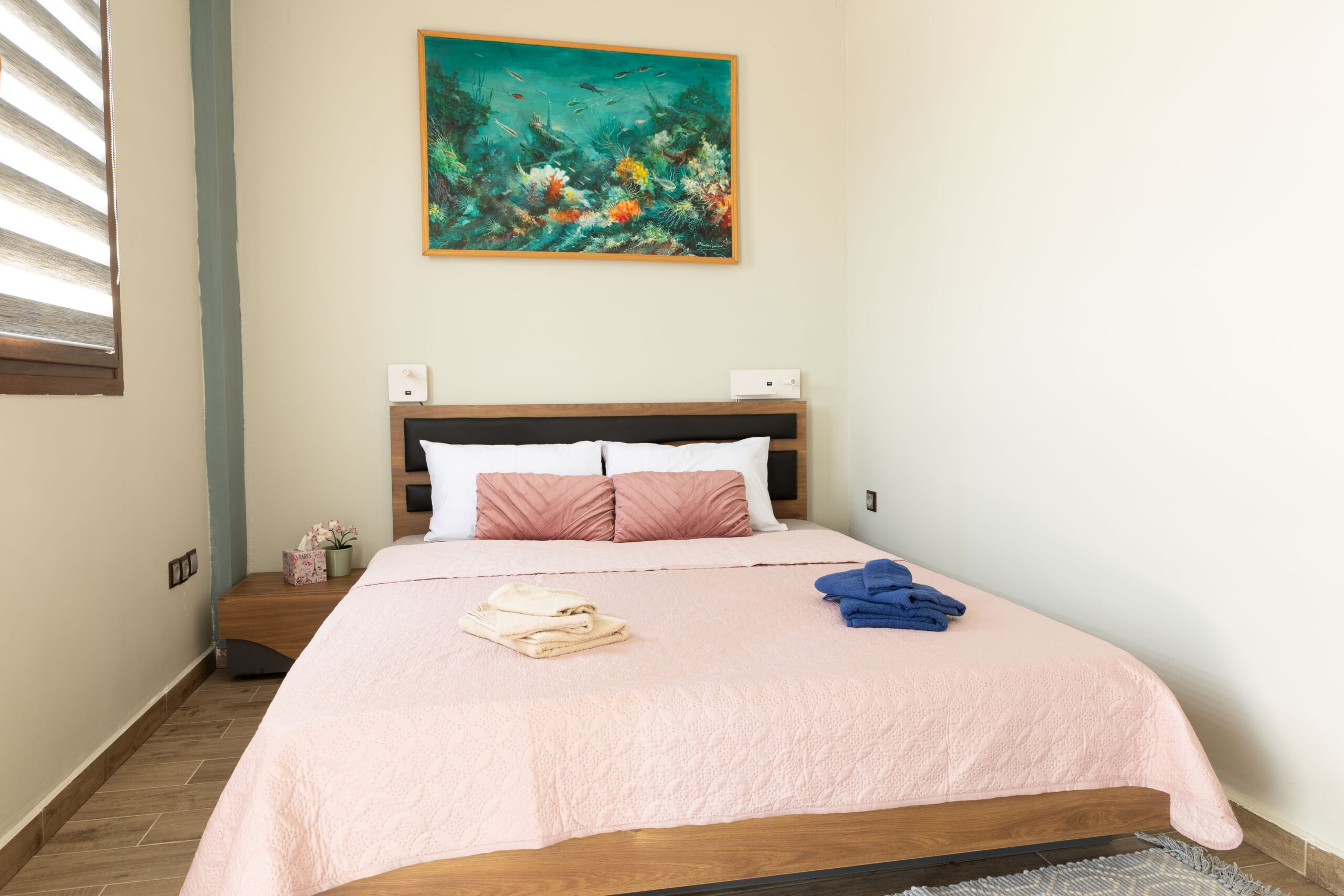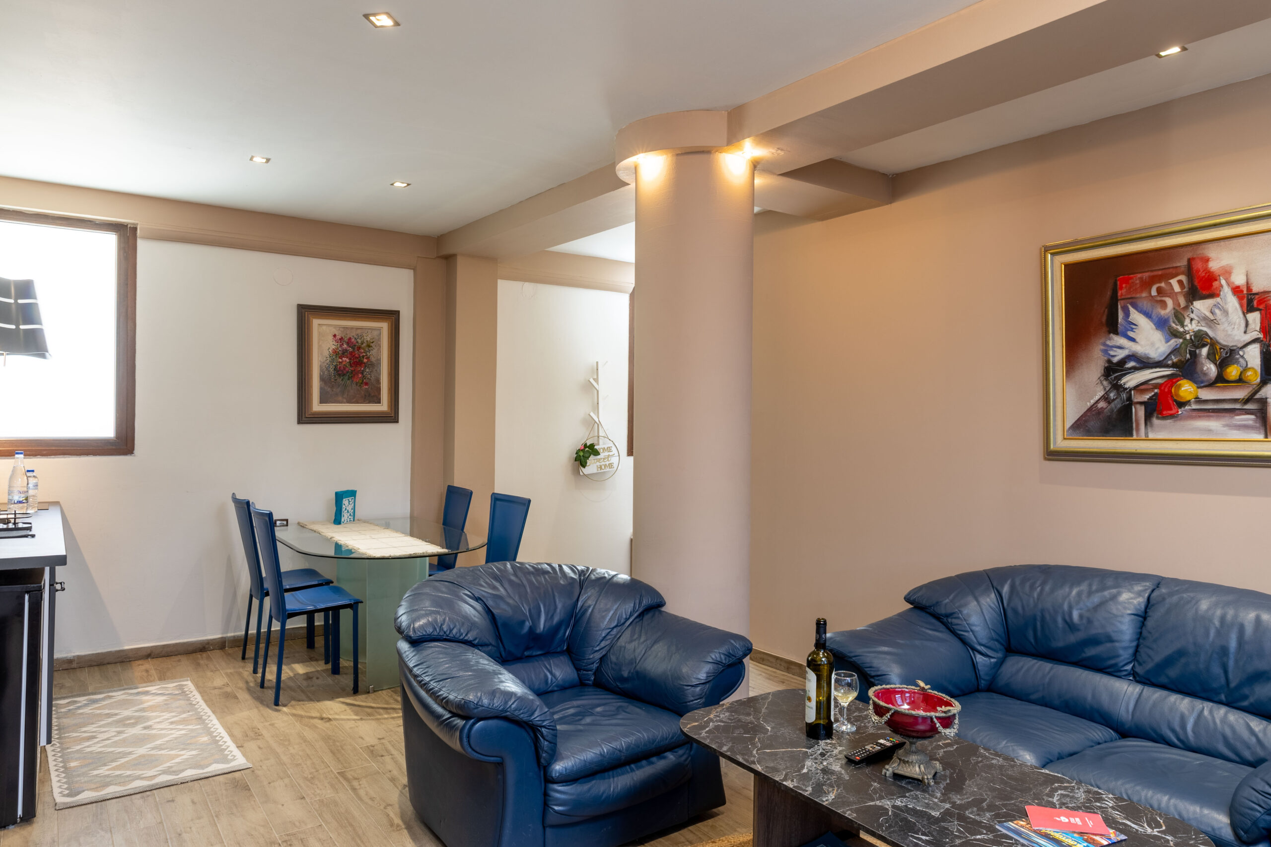 This spacious, air-conditioned apartment features two bedrooms, two bathrooms with free toiletries and a hairdryer, a cozy living room, and a fully equipped kitchen with a refrigerator. Towels and bed linen are also provided for your convenience.