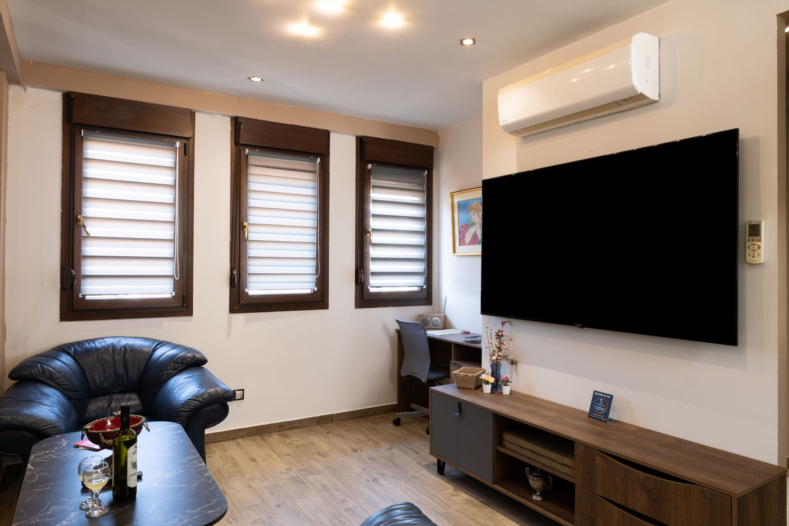 - Amenities: Air conditioning, Balcony, Cleaning products, Coffee maker, Electric kettle, Flat screen TV 70'', Kitchen utensils, Oven, Private bathroom, Private kitchen, Refrigerator, Streaming service (e.g. Netflix), Toaster